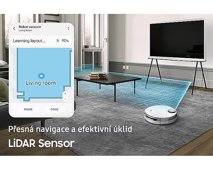 Samsung Jet Bot+ je robotický vysávač, ktorý prináša inteligentné a účinné riešenie upratovania bez zbytočnej námahy. Vďaka modernej technológii LiDAR neustále sleduje svoju polohu v priestore, vytvára presnú mapu miestností a podľa nej optimalizuje trasu. Výsledkom je systematické a efektívne upratovanie, pri ktorom nevynechá žiadne dôležité miesto.
