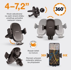 Držiak umožňuje natočenie telefónu v rozsahu 360° , takže ľahko prepnete medzi vertikálnou a horizontálnou polohou podľa aktuálnej potreby – či už sledujete navigáciu, alebo prijímate hovory.