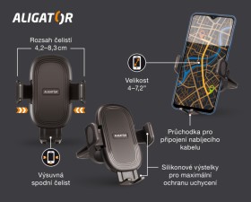 Aligator Multi HA20 je praktický držiak pre mobilné telefóny, ktorý sa ľahko pripevňuje priamo do ventilačnej mriežky. Vďaka elegantnému prevedeniu nebráni vo výhľade a je kompatibilný s väčšinou bežných aj silnejších vetracích mriežok.
