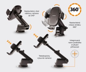 Vďaka vstavanej nano-podložke môžete držiak jednoducho umiestniť ako na palubnú dosku, tak aj na čelné sklo. Univerzálna konštrukcia umožňuje spoľahlivú fixáciu a jednoduchú manipuláciu bez nutnosti zložitej montáže.