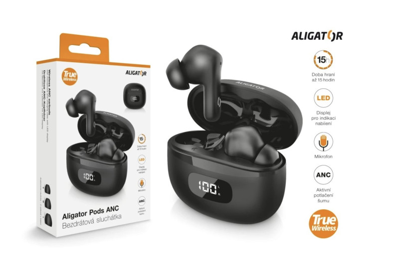 | Obsah balenia: | Bluetooth slúchadlá Aligator Pods ANC Nabíjacie puzdro s LED displejom Nabíjací USB-C kábel 3 veľkosti náušníkov Návod na použitie |