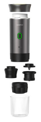 Vstavaná batéria s kapacitou 7500 mAh zvládne na jedno nabitie pripraviť až 5–6 káv s ohrevom vody alebo až 40 káv , pokiaľ použijete už horúcu vodu. Dobíjanie je jednoduché vďaka USB-C konektoru - kávovar môžete nabiť z powerbanky, notebooku či klasickej nabíjačky.
