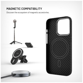 Puzdro je navrhnuté presne na mieru danému modelu telefónu, všetky výrezy perfektne sedia a vďaka svojmu ľahkému a ultratenkému prevedeniu iba 1,2 mm je takmer neviditeľné . Kryt ponecháva voľný prístup k ovládacím tlačidlám, konektorom, reproduktoru aj fotoaparátu. Zvýšený kovový rámček účinne chráni šošovky fotoaparátu. Kryt je navyše vybavený MagSafe magnetmi, ktoré zaisťujú bezproblémové bezdrôtové nabíjanie aj kompatibilitu s ďalším MagSafe príslušenstvom.