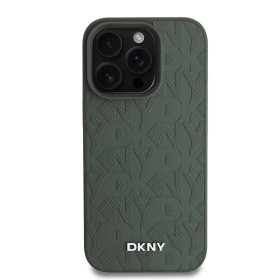 DKNY PU Leather Grid Pattern Magsafe Zadní Kryt pro iPhone 16 Pro Green