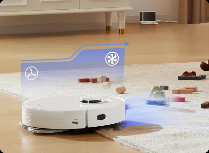 Naša technológia ultrazvukového rozpoznania kobercov pomáha rozlíšiť tvrdé podlahy a koberce, aby v reálnom čase zvolila správnu stratégiu čistenia.