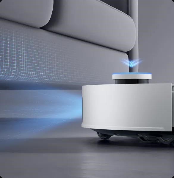 L50 Pro Ultra je vybavený DToF systémom, ktorý vysúva 360-stupňový senzor , ktorý umožňuje robotickému vysávaču skenovať okolie a lepšie sa orientovať v otvorených priestoroch vášho domova. Keď je vysúvací DToF senzor zatiahnutý, výška vysávača je iba 89,5 mm, takže ľahko vojde aj pod nízky nábytok, skrine či postele.