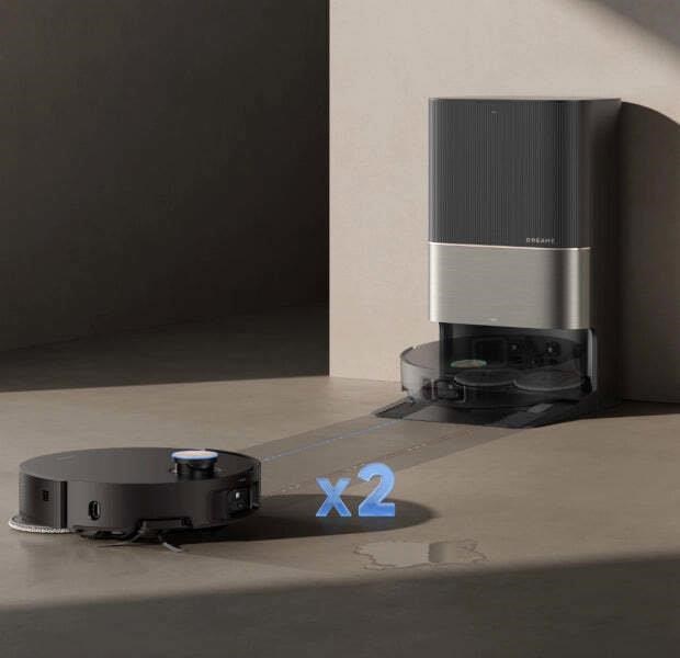 Už pri prvom spustení využíva robotický vysávač Dreame X50 Ultra Complete technológiu 360 ° DToF skenovania, vďaka čomu precízne zmapuje celý interiér. Táto laserová navigácia umožňuje systematické a efektívne čistenie bez vynechaných miest. Vysávač je navyše vybavený umelou inteligenciou, ktorá mu pomáha vyhnúť sa aj predmetom zabudnutým na podlahe.