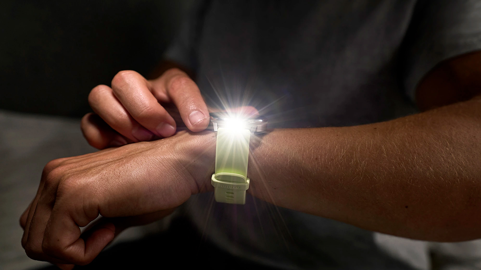 Praktické integrované LED svietidlo s nastaviteľnou intenzitou je pripravené poslúžiť pri behu za šera, ceste domov alebo vo chvíľach, kedy potrebujete voľné ruky. Jednoduché ovládanie priamo zo zápästia z nej robí nenahraditeľný prvok každodenného komfortu.