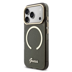 Guess IML Glitter Script Strap MagSafe Zadní Kryt pro iPhone 17 Pro Black