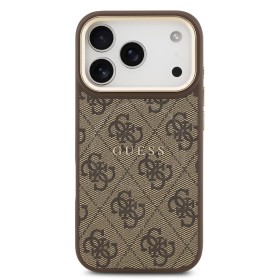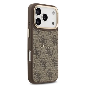 Ochranný kryt Guess PU Leather 4G Metal Logo Gold Frame určený pre mobilný telefón Apple iPhone 17 Pro . Ide o ochranu pred bežným poškodením pri používaní. Zaujme vás štýl a funkčnosť. Vykĺznutiu z ruky zabráni povrchová úprava obalu. Vzhľad podčiarkne Guess „4G“ elegantnú potlač a rámček zadného fotoaparátu, ktorý je zdobený elegantným zlatým prevedením.
