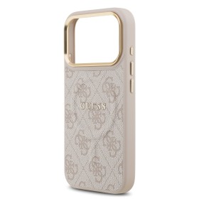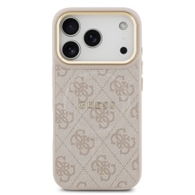 Ochranný kryt Guess PU Leather 4G Metal Logo Gold Frame určený pre mobilný telefón Apple iPhone 17 Pro . Ide o ochranu pred bežným poškodením pri používaní. Zaujme vás štýl a funkčnosť. Vykĺznutiu z ruky zabráni povrchová úprava obalu. Vzhľad podčiarkne Guess „4G“ elegantnú potlač a rámček zadného fotoaparátu, ktorý je zdobený elegantným zlatým prevedením.