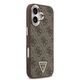 Ochranný kryt Guess PU Leather 4G Strass Triangle Logo Gold Frame MagSafe vyrobený presne pre mobilný telefón Apple iPhone 17 . Ide o ochranu pred poškodením, poškriabaním aj pádmi pri bežnom používaní. Zaujme vás štýl a funkčnosť. Vykĺznutiu z ruky zabráni povrchová úprava obalu. Krásny vzhľad podčiarkne nápadný Guess „4G“ elegantný potlač doplneným o zlaté triangle logo GUESS. Rámček zadného fotoaparátu je zdobený elegantným zlatým prevedením. Tento dizajn dáva krytu punc luxusu.