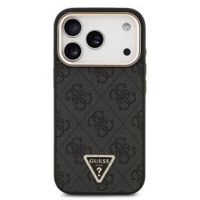 Ochranný kryt Guess PU Leather 4G Strass Triangle Logo Gold Frame MagSafe vyrobený presne pre mobilný telefón Apple iPhone 17 Pro . Ide o ochranu pred poškodením, poškriabaním aj pádmi pri bežnom používaní. Zaujme vás štýl a funkčnosť. Vykĺznutiu z ruky zabráni povrchová úprava obalu. Krásny vzhľad podčiarkne nápadný Guess „4G“ elegantný potlač doplneným o zlaté triangle logo GUESS. Rámček zadného fotoaparátu je zdobený elegantným zlatým prevedením. Tento dizajn dáva krytu punc luxusu.