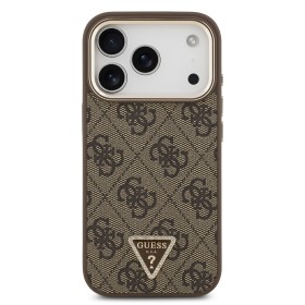 Ochranný kryt Guess PU Leather 4G Strass Triangle Logo Gold Frame MagSafe vyrobený presne pre mobilný telefón Apple iPhone 17 Pro . Ide o ochranu pred poškodením, poškriabaním aj pádmi pri bežnom používaní. Zaujme vás štýl a funkčnosť. Vykĺznutiu z ruky zabráni povrchová úprava obalu. Krásny vzhľad podčiarkne nápadný Guess „4G“ elegantný potlač doplneným o zlaté triangle logo GUESS. Rámček zadného fotoaparátu je zdobený elegantným zlatým prevedením. Tento dizajn dáva krytu punc luxusu.