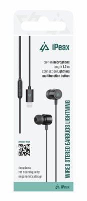 iPeax Drôtové Slúchadlá Lightning čierna