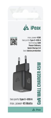 iPEAX GaN SIEŤOVÁ NABÍJAČKA 45W (USB-C + USB-A)