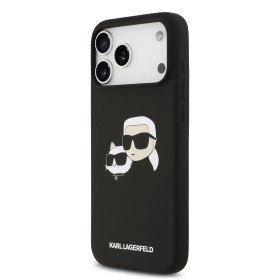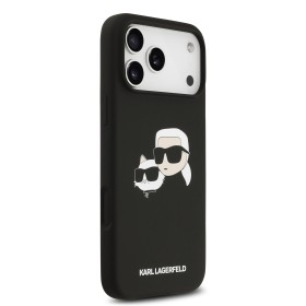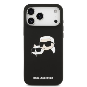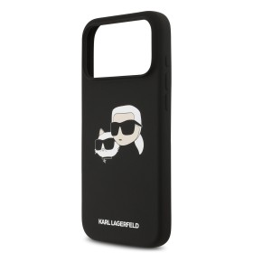Prémiový silikónový kryt Karl Lagerfeld Liquid Silicone Double Heads Magsafe pre mobilný telefón Apple iPhone 17 Pro Max. Vyrobený je z odolného, pružného, ale zároveň ľahkého materiálu. Na zadnej strane je ikonické vyobrazenie Karola Lagerfelda a jeho mačky Choupette. Povrch puzdra je príjemný na dotyk, je mäkký a nešmýka sa v ruke.
