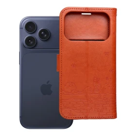 Flipové pouzdro MEZZO s lisovaným vzorem pro mobilní telefon Apple iPhone 17 Pro Max. Krásný vzor koček v hnědé barvě vás svým vzhledem nadchne. Vzor na rozdíl od většiny případů tohoto typu designu, nebyl namalován ani potištěn, ale vlisován do materiálu lisem, díky čemuž je odolný, neodírá se a povrch krytu se vyznačuje měkkým, nerovným povrchem, který lze cítit pod prsty. Povrch obalu je z ekokůže dodává mu elegantní vzhled, flexibilní TPU vložka usnadňuje instalaci zařízení do pouzdra.
