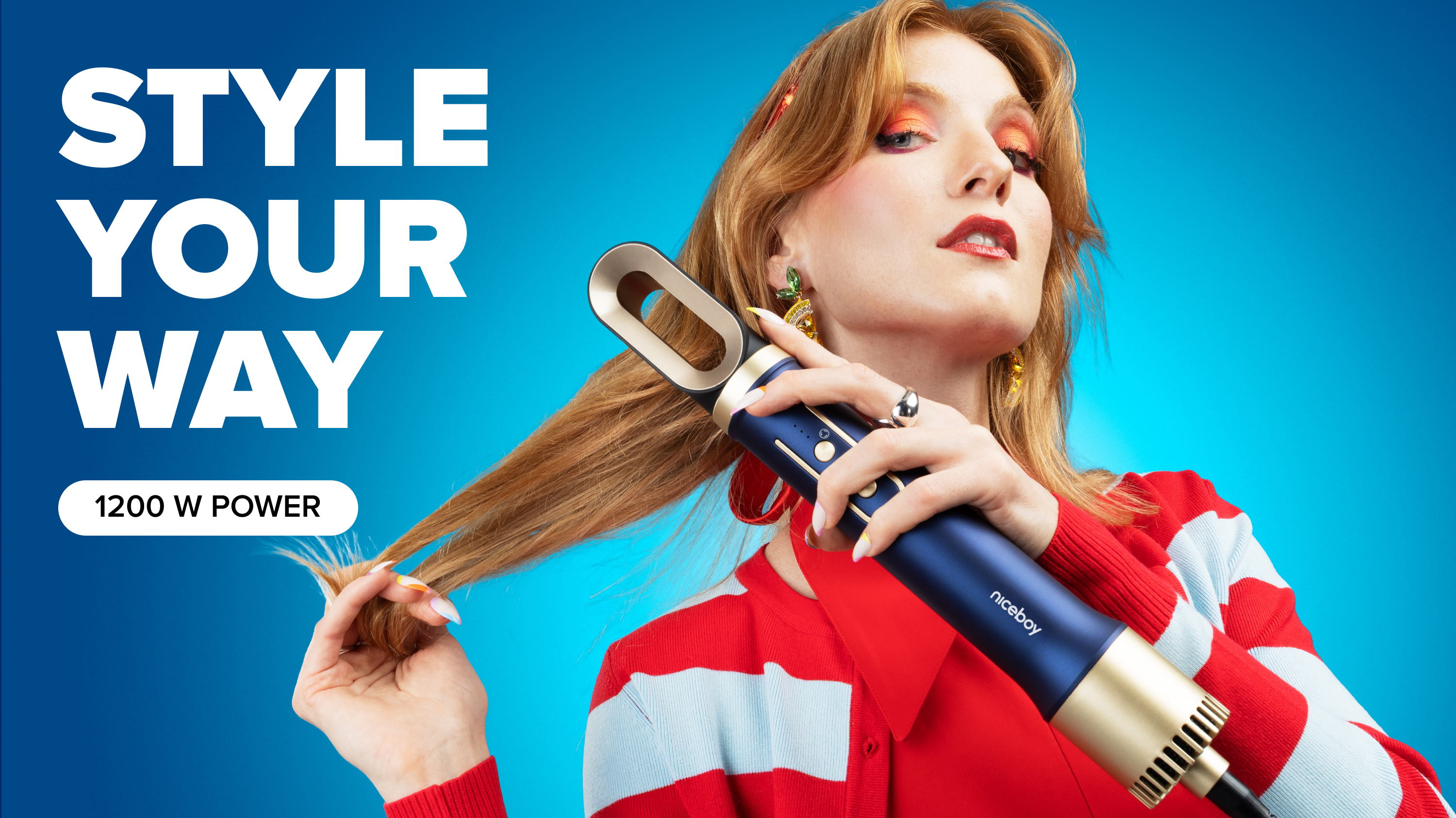 Fén, kulma, žehlička, kefy na vlasy - všetky tieto veci už v kúpeľni nepotrebuješ. Niceboy AirBlow PRO Hot Air Styler je kulmofén 5v1 , ktorý ti urobí službu za nich. Vlasy ti po umytí starostlivo vysušia, vytvaruje, narovná aj natočí. Urob si miesto na poličke iba pre jeden produkt, s ktorým tvoje vlasy konečne získajú lesk, hebkosť. Komplimenty budeš prehadzovať vidlema.