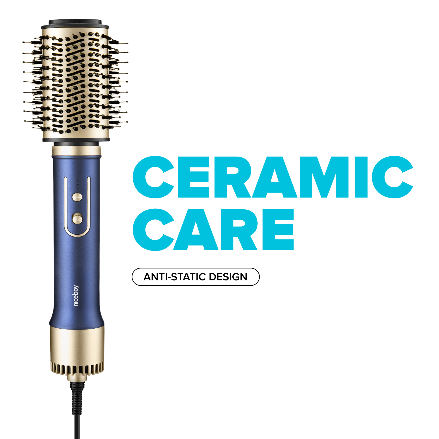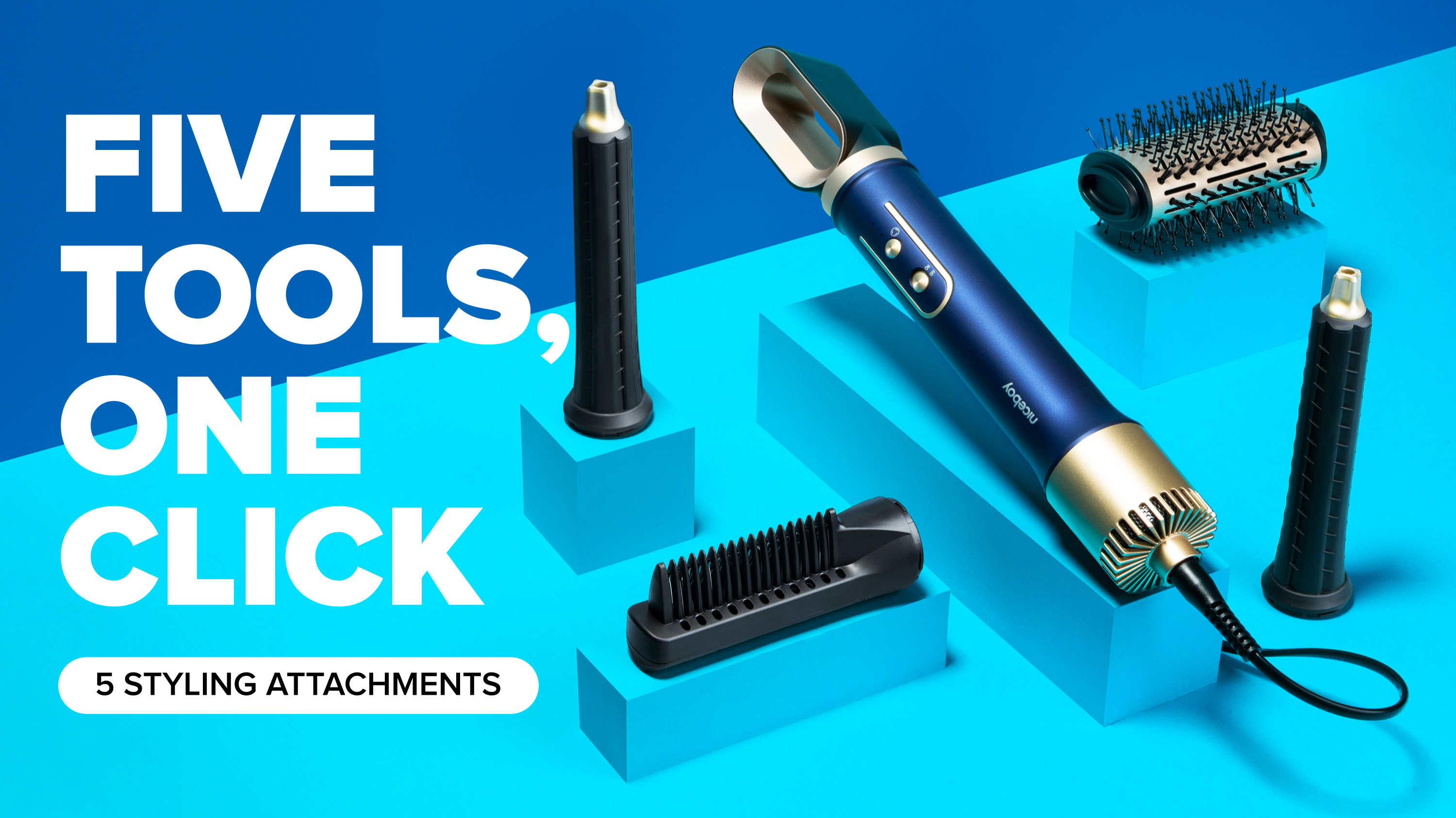 Napokon zdravé a krásne vlasy! Jeden AirBlow PRO od Niceboya ti nahradí v kúpeľni fén, kulmu, žehličku aj okrúhle kefy na vlasy. S 1 200-wattovým motorom a keramickou hlavicou vysuší, navlní aj narovná vlasy. Má päť nástavcov pre každý účes, tri teplotné režimy a drobné detaily, čo ti uľahčí styling.