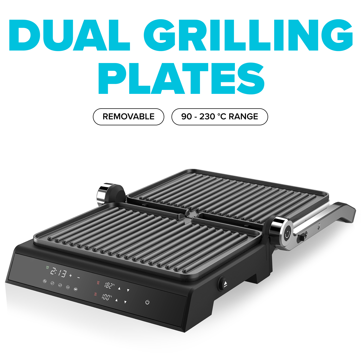 S dvoma veľkými grilovacími doskami a možnosťou otvorenia aj na 180 ° dokážete s Niceboy ION Grillmaster pripraviť viac jedál naraz. Pre každú grilovaciu dosku je možné nastaviť vlastnú teplotu v rozmedzí 90 - 230 ° C, čo umožňuje prípravu rôznych pokrmov súčasne.