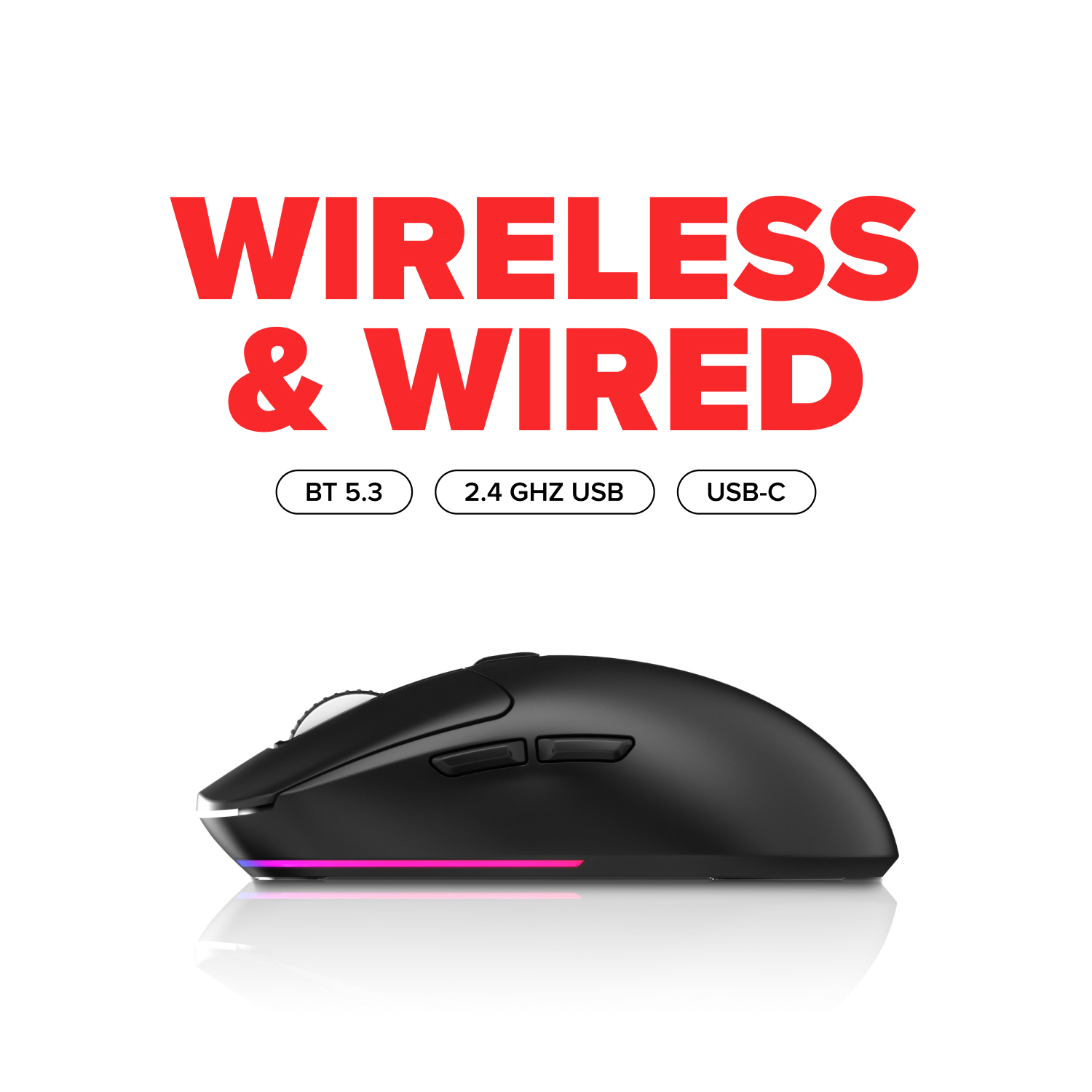 Pri hernej myši MW400 si môžeš vybrať hneď z troch možností. Pripoj ju bezdrôtovo cez Bluetooth 5.3 alebo cez 2.4 GHz USB dongle. A keď ti dôjde šťava, siahni po klasickom USB-C kábli a pripoj myš k nemu. Či už potrebuješ maximálnu voľnosť v pohybe alebo absolútnu odozvu, MW400 má oboje.