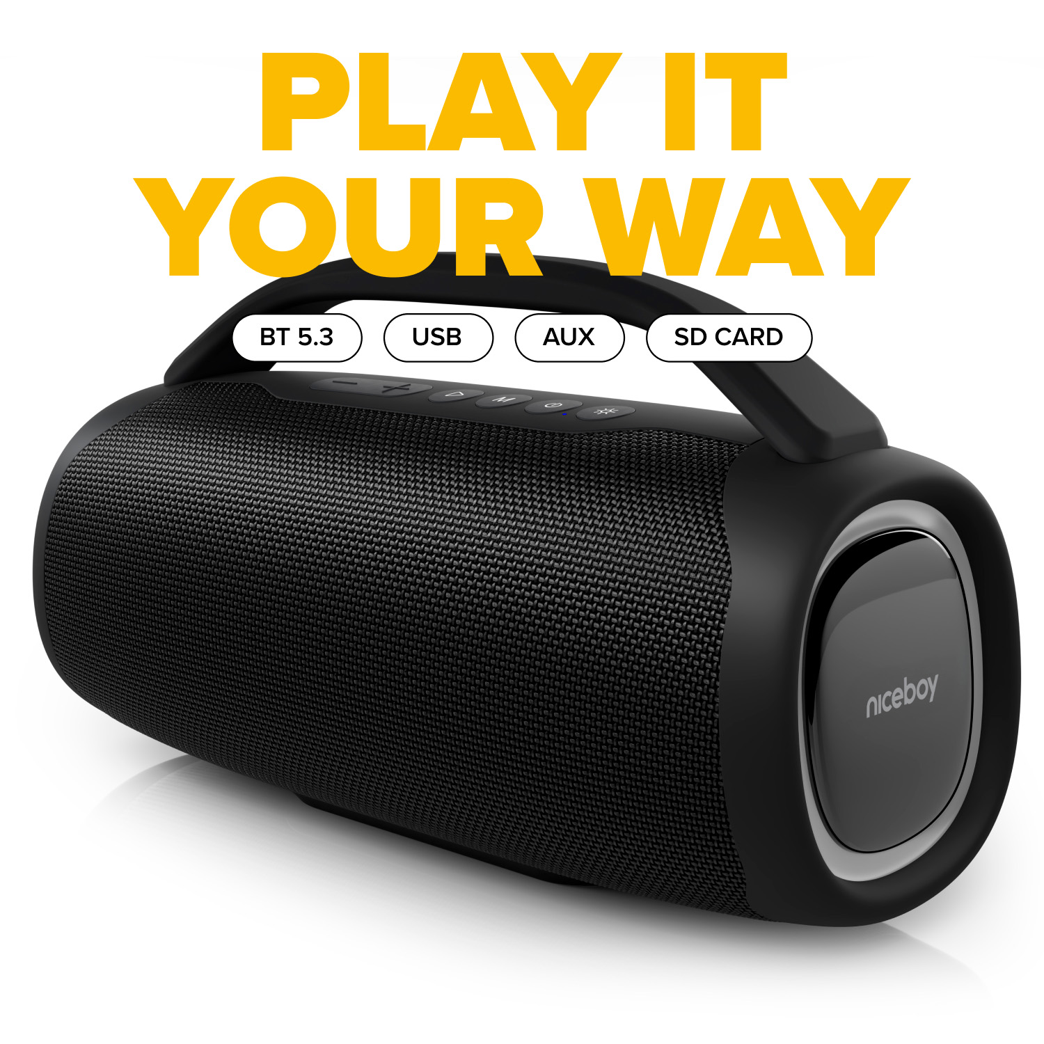 Kamkoľvek ideš, reprák Vulcan ti dá poriadny hudobný podkres. Medzi Niceboy repráky je najväčší a najsilnejší. S 80wattovým výkonom, výraznými basami, IPX5 vodeodolnosťou a 12hodinovou výdržou je predurčený stať sa stredobodom každej akcie.