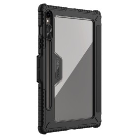 Ochranné puzdro Nillkin Bumper PRO s praktickým stojanom a zosilneným TPU rámčekom chráni Samsung Galaxy Tab S9/S10 FE pred poškodením a nárazmi. Unikátny skladací flipový kryt zobrazuje iPad vo všetkých zvolených uhloch na písanie, čítanie a prezeranie webu. Šošovka kamery je navyše chránená posuvným krytom.