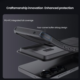 Zadný kryt Nillkin CamShield PRO pre Samsung Galaxy S26+ . Mimoriadne odolné puzdro , ktoré ponúka perfektnú ochranu vášho zariadenia pred možným poškodením. Skvelým prvkom je posuvný jazdec , ktorý podľa potreby úplne zakryje zadnú kameru a ochráni ju pred prípadným fyzickým poškodením alebo zaprášením. Celý mechanizmus púzdra funguje spoľahlivo a kombinuje klasické, módne a ochranné prvky.
