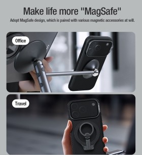 Zadný kryt Nillkin CamShield Prop Magnetic pre mobilný telefón Apple iPhone 17 Pro . Obal s výklopným krytom šošovky fotoaparátu a integrovaným magnetom . Kryt dodá vášmu smartfónu elegantný vzhľad a ochráni telefón pred pádmi, škrabancami aj nečistotami. Ide o účinný ochranný prvok mobilu.