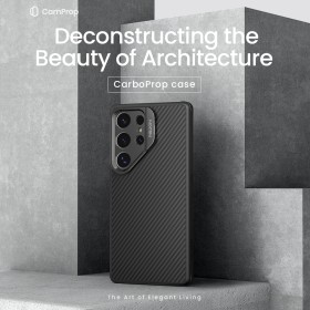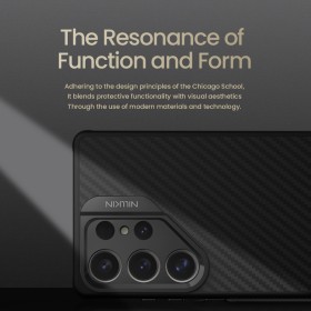 Odolný ochranný kryt Nillkin CarboProp Aramid Magnetic určený pre Samsung Galaxy S25 Ultra . Obal je vyrobený z materiálu, ktorému sa hovorí v materiálovom priemysle "čierne zlato" a to je aramidové vlákno . Tento materiál s TPU predstavujú komplexné bezpečie pre mobilný telefón, na ktorom je puzdro použité. Zadná strana je 5x pevnejší bež oceľ a TPU rámček ochráni mobil dookola.