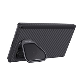 Odolný ochranný kryt Nillkin CarboProp Aramid Magnetic určený pre Samsung Galaxy Z Fold7 . Obal je vyrobený z materiálu, ktorému sa hovorí v materiálovom priemysle "čierne zlato" a to je aramidové vlákno . Tento materiál s TPU predstavujú komplexné bezpečie pre mobilný telefón, na ktorom je puzdro použité. Zadná strana je 5x pevnejší bež oceľ a TPU rámček ochráni mobil dookola.