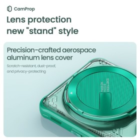 - výklopný kryt na ochranu šošoviek fotoaparátu, ktorý môže slúžiť aj ako stojan