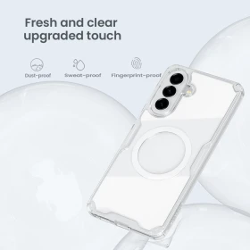 Kryt Nillkin Nature TPU PRO Magnetic s integrovaným magnetom fajnovo ochráni váš Samsung Galaxy A57. Obal je vyrobený z kombinácie dvoch materiálov PC/TPU. Zadnú stranu mobilného telefónu udrží v bezpečí pevný polykarbonát odolný proti poškriabaniu, hrany pružný TPU materiál na bokoch. Táto kombinácia materiálu zaručuje, že kryt nežltne a zostáva farebne stály.