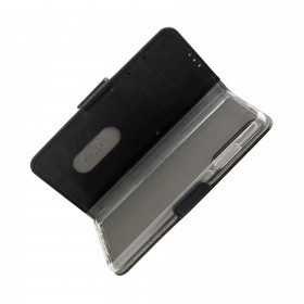 Odklápacie predná časť puzdra zaručí ochranu displeja pred poškodením a je istená zatváraním na magnet. Na vnútornej strane obalu nájdete kapsu na bankovky a menšie priehradky. Telefón je stabilne uchytený v transparentnom TPU kryt vnútri puzdra. Všetky ovládacie tlačidlá sú plne prístupné. Výrez na slúchadlo umožňuje pohodlné telefonovanie aj so zavretým puzdrom. Dômyselná konštrukcia puzdra umožňuje nastaviť pozíciu stojančeku, ktorú oceníte najmä pri sledovaní filmov alebo videohovoru.