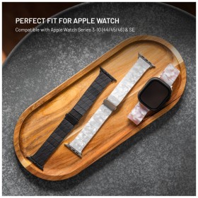 Fajnovou voľbou na bežné nosenie a iné aktivity je elegantný resinový remienok FIXED Resin Strap pre Apple Watch 44/45/46/49mm. Je vhodný aj pre citlivejšiu kožu aj šetrný k pokožke, pretože je vyrobený z ľahkej a priedušnej leštenej živice. Vďaka odolnosti proti UV žiareniu, potu a chemikáliám si zachováva svoj vzhľad aj pri pravidelnom používaní. Je nutné vyzdvihnúť aj to, že živicový materiál je možné navyše dobre recyklovať a je teda šetrný k životnému prostrediu.