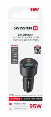 Tento adaptér od značky Swissten nie je len obyčajným doplnkom do zapaľovača. Ide o technologicky vyspelé zariadenie, ktoré vďaka podpore štandardov PD 3.0 a QC 4.0 dokáže vyvinúť celkový výkon až 95 W . Dominantou je port USB-C1 , ktorý sám o sebe poskytuje úctyhodných 65 W , čo je hodnota plne dostačujúca pre energeticky náročné notebooky . Pokiaľ teda trávite veľa času na cestách a potrebujete mať svoj pracovný nástroj neustále v pohotovosti, tento model vás nesklame.