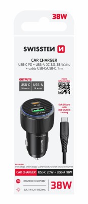 Swissten CL Adaptér USB-C PD + USB-A, 38W čierna + kábel USB-C / USB-C 1m