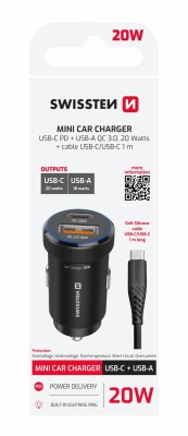 Kvalitný Swissten CL Adaptér USB-C PD + USB-C s výkonom 20W a priloženým soft silicone káblom je nepostrádateľným doplnkom pre každého, kto trávi čas za volantom a potrebuje mať svoje mobilné zariadenie vždy v plnej pohotovosti.