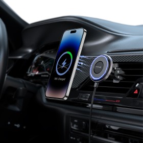 Magnetický držiak do auta s bezdrôtovým nabíjaním až 15 W predstavuje praktické a elegantné riešenie pre bezpečné používanie telefónu počas jazdy.