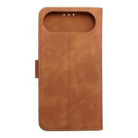 TENDER holster. Made of soft, pleasant to the touch material. Equipped with three pockets for banknotes and documents. Fastened with a magnet. The TENDER holster provides full protection of the device, securing not only its back, but also the screen. Built-in magnet clasp prevents accidental opening of the case, keeping your phone safe. Three internal pockets, visible after opening the flap, allow for safe storage of documents and banknotes. The perforation on the bend makes the holster fold to the TV stand position. It is a comfortable stand that facilitates watching movies. Installation of the case is extremely simple: the flexible insert allows you to easily place your phone in it. Material: eco leather