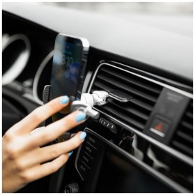 Minimalistický držiak do ventilácie FIXED Butterfly originálny design. Jednoduché ovládanie vám poslúži na uchytenie mobilného telefónu počas jazdy autom. Vďaka roztváracím univerzálnym kliešťam sa zvládne postarať o všetky typy telefóny so šírkou 5,3 - 8,4 cm. Stlačením ovládacej páčky sa kliešte otvoria, po uvoľnení potom bezpečne a pevne zaistí vložený telefón. Sklon hlavy držiaka môžete nastaviť a zafixovať v ľubovoľnej polohe, samotný telefón si potom natočíte pomocou 360 ° kĺbu do ideálneho pozorovacieho uhla. Držiak je určený do ventilačnej mriežky, vďaka špeciálnym uťahovacím kliešťam s nastaviteľnou šírkou sa prispôsobí prevažnej väčšine ventilácií a zvládne všetky otrasy počas jazdy.
