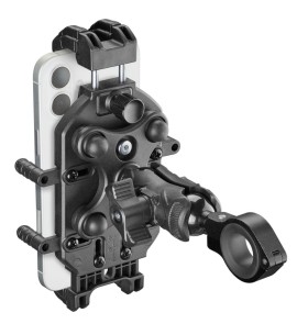 Vhodné pre akýkoľvek typ smartfónu vrátane odolných pracovných telefónov . Pomocou 8 kontaktných bodov zostane telefón vždy na mieste av bezpečí. Antivibračný modul sa výrazne zníži škodlivé vibrácie prenášané na telefón. Pohyblivé horné upevňovacie oká pre jedinečne ľahké upevnenie. Vďaka kĺbovému ramenu je možné robustný držiak telefónu namontovať v ľubovoľnej polohe riadidiel. Upevnenie je zaistené pomocou špeciálneho držiaka. Vhodné pre riadidlá s priemerom 22 až 30 mm.