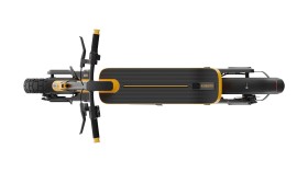 Kolobežka je vybavená 12-palcovými terénnymi pneumatikami so zníženým valivým odporom, ktoré pomáhajú prekonávať nerovné povrchy a zaisťujú stabilnú jazdu. Komfort ďalej zvyšuje dvojité kyvné zavesenie ramien s odolnými elastomérovými prvkami, ktoré účinne tlmia nárazy a vibrácie pri jazde.