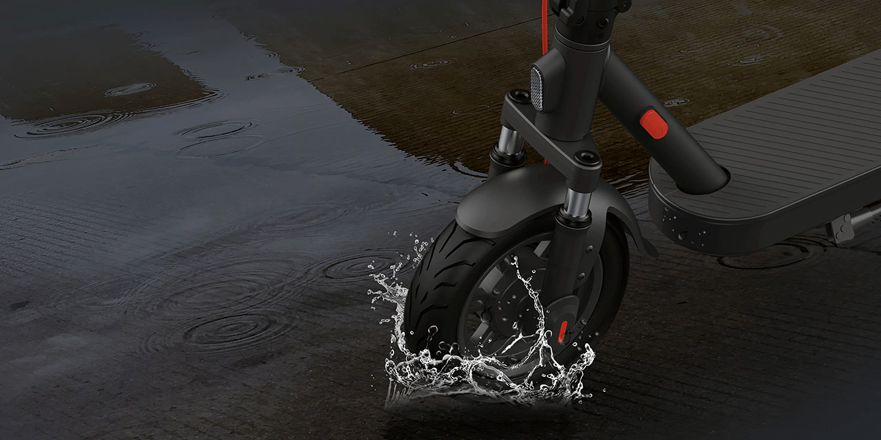 Kolobežka má stupeň vodeodolnosti IPX5 , zatiaľ čo batéria disponuje ochranou IPX6 , čo znamená, že bez problémov zvládne jazdu aj v miernom daždi alebo vlhku.