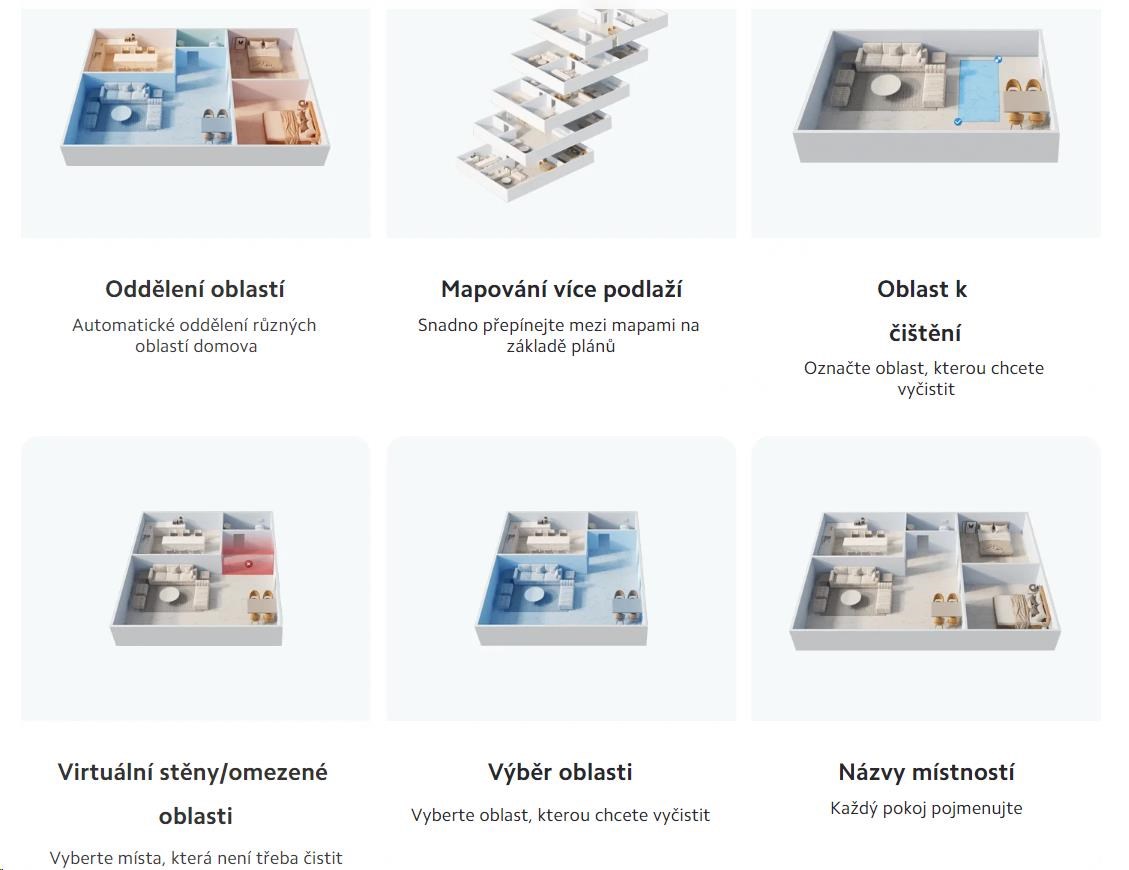 S aplikáciou Xiaomi Home App je možné vytvárať presné mapy a individuálne upravovať plán upratovania - pre maximálnu efektivitu.