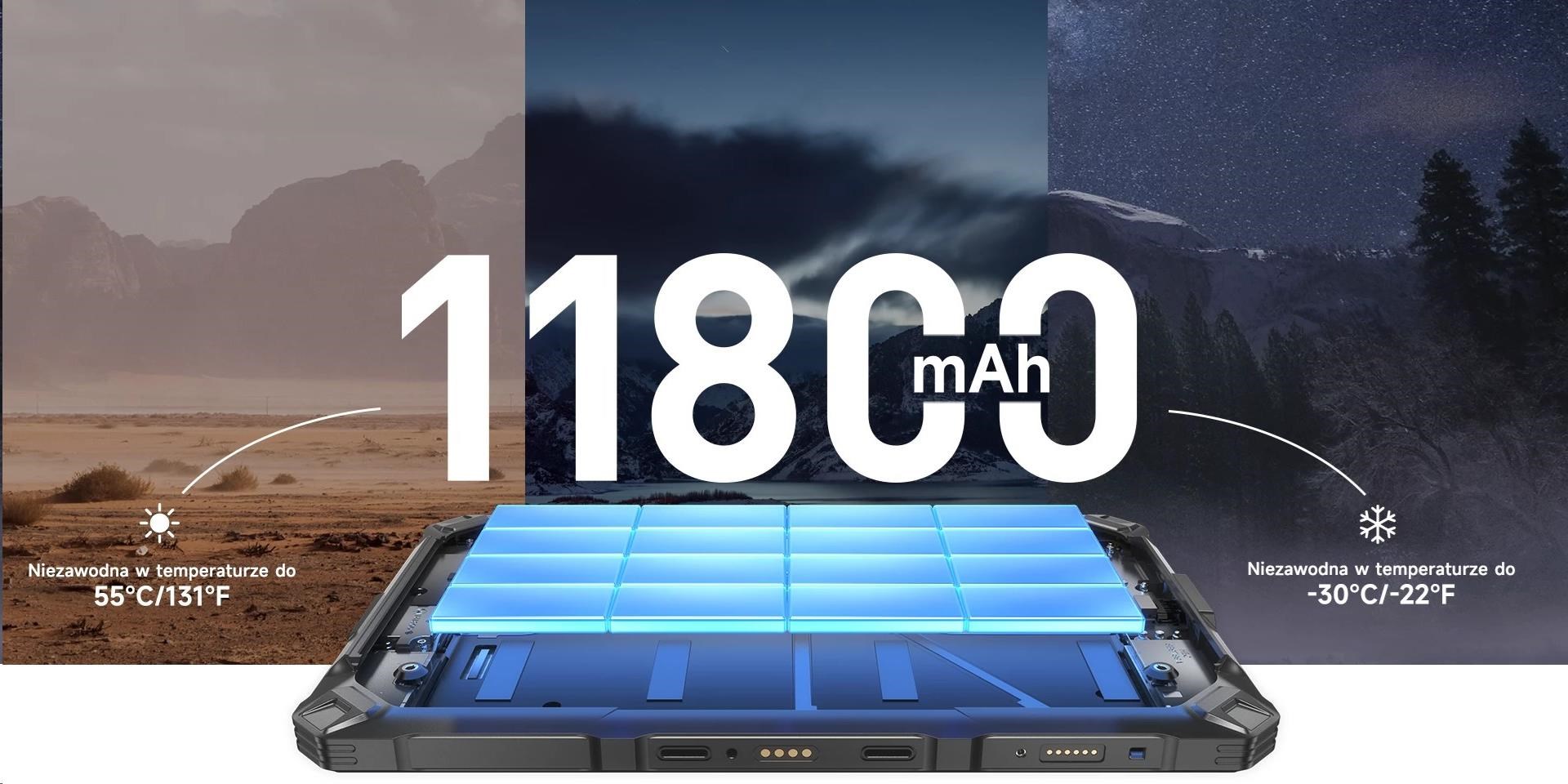 Vysokokapacitná batéria s 11800 mAh ponúka až 642 hodín v pohotovostnom režime alebo 64 hodín nepretržitých hovorov. Nabíjanie prebieha 33W drôtovo cez USB-C alebo bezdrôtovo, a tablet je možné použiť aj ako powerbanku s výkonom 10 W pre ďalšie zariadenia.